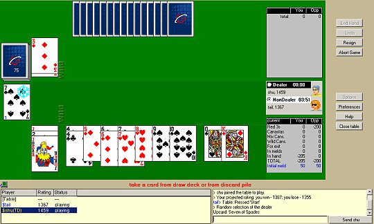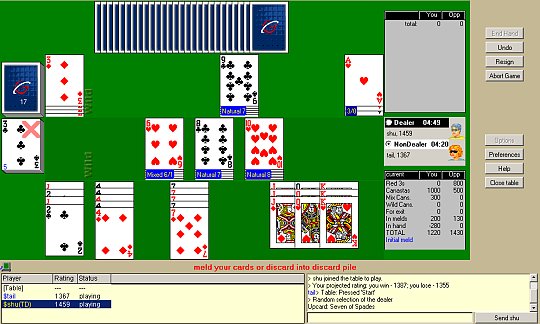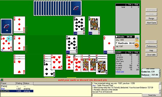 You can play Canasta games and tournaments in internet for free or for money prizes.