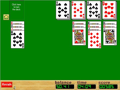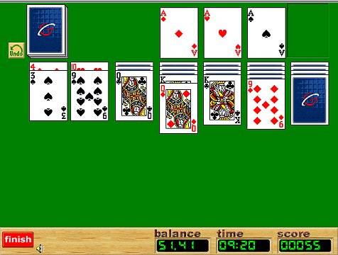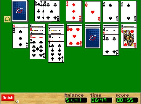 This game is a famous Klondike Solitaire. The object of the game is to use all cards to build up the 4 suit stacks in ascending order starting with the aces. As the game proceeds, the 7 row stacks on the bottom are build only as an intermediate holding place for eventual build-up of 4 suit stacks.